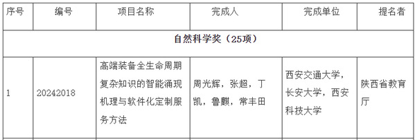 8月13日,陕西省人民政府发布《陕西省人民政府关于2024年度陕西省科学技术奖励的决定》。实验室教师丁凯、常丰田参与完成的“高端装备全生命周期复杂知识的智能涌现机理与软件化定制服务方法”成果荣获陕西省自然科学奖二等奖。该成果由西安交通大学牵头,联合长安大学、西安科技大学共同完成。